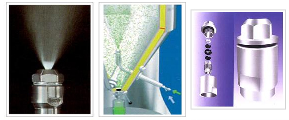 壓力式霧化產(chǎn)生的霧化液滴粒徑分布更窄,更均勻,且得到的噴霧干燥粉具有更高的堆積密度 ,更適用于高脂肪含量、粗顆粒、期望干燥粉流動性好的物料的霧化。這些制品包括:乳制品、咖啡、洗衣粉、肥皂粉、陶瓷、催化劑以及許多無機鹽類。對于低粘度的料液,也采用壓力式噴嘴較適宜。